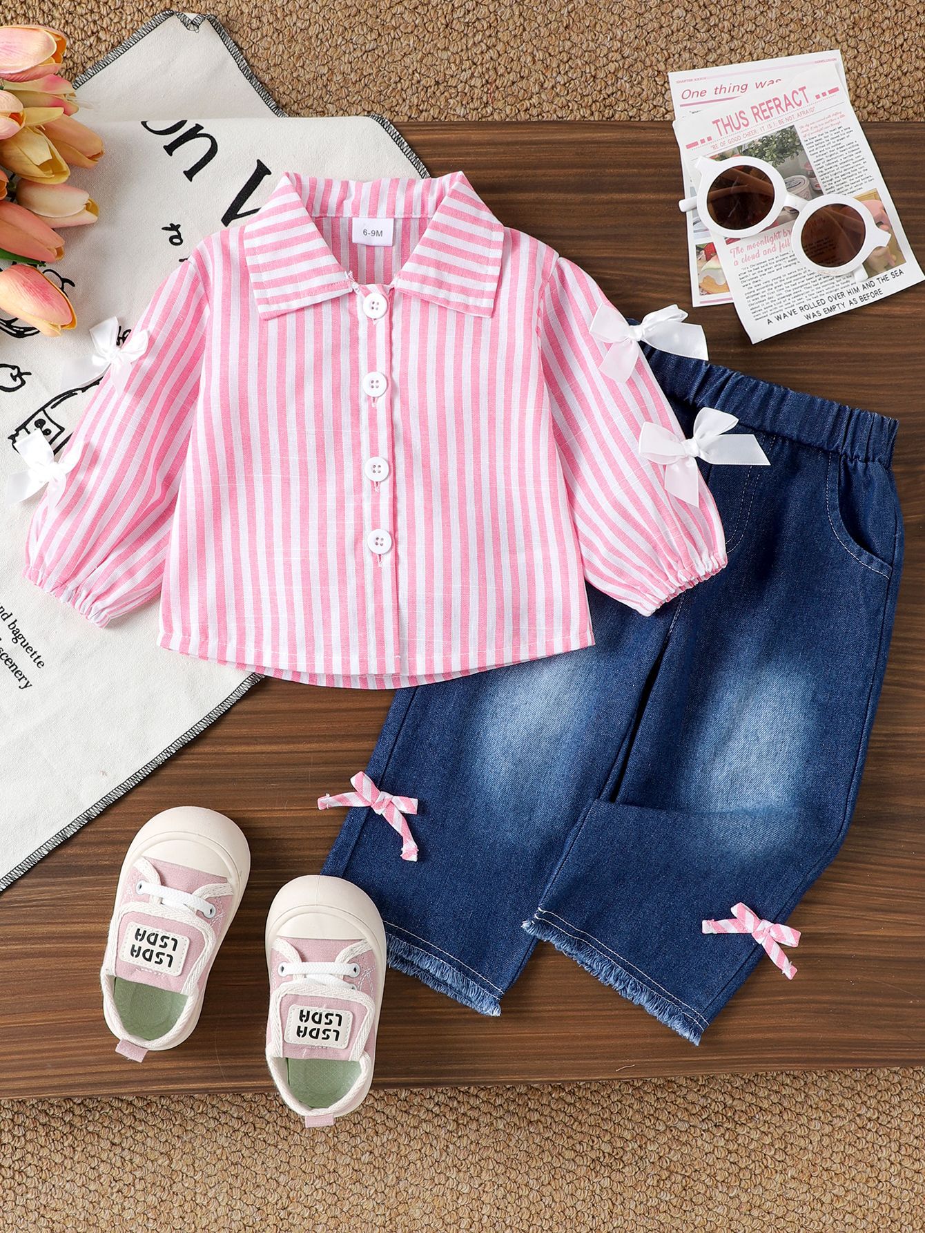 / بدلة بنات بودرى مخطط(سنة الي 2-3سنة)