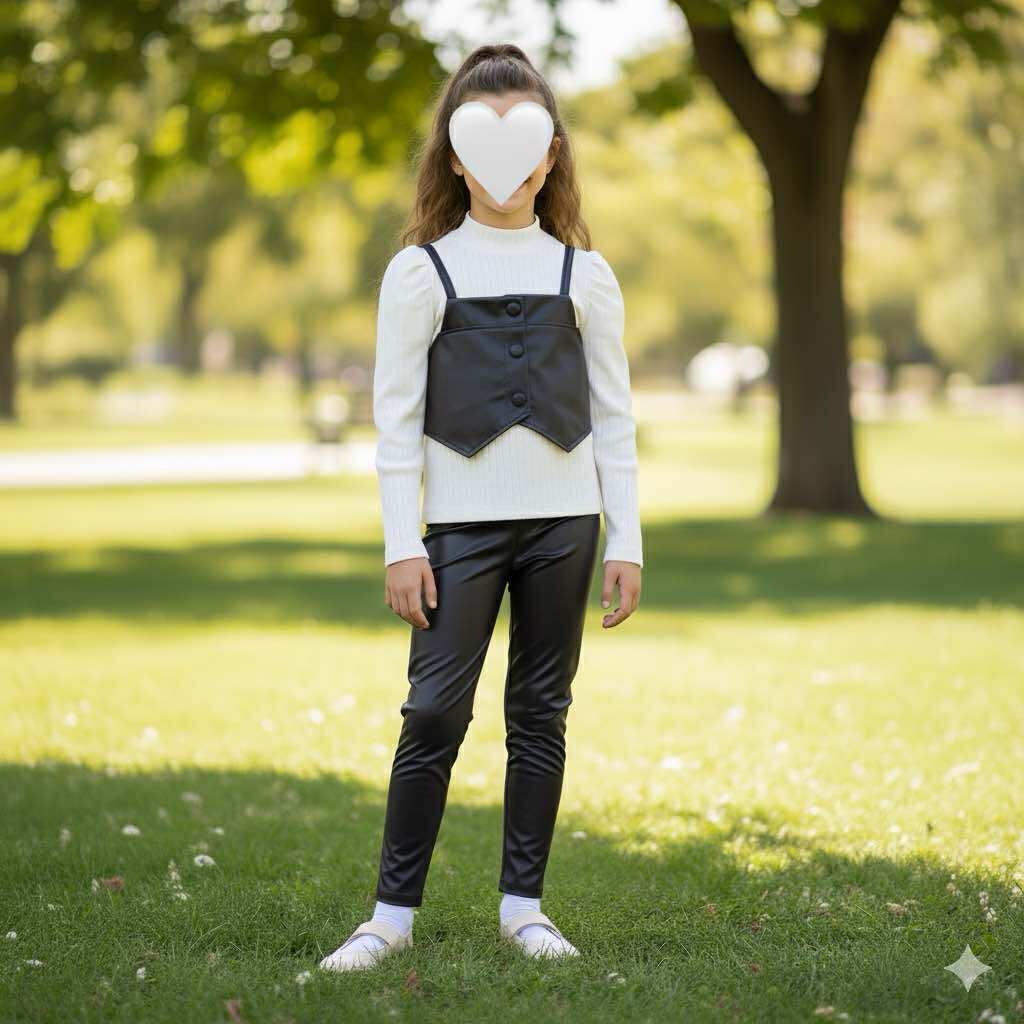 بدلة بنات تلات قطع جلد (اسود)من 2سنة الي 7سنوات