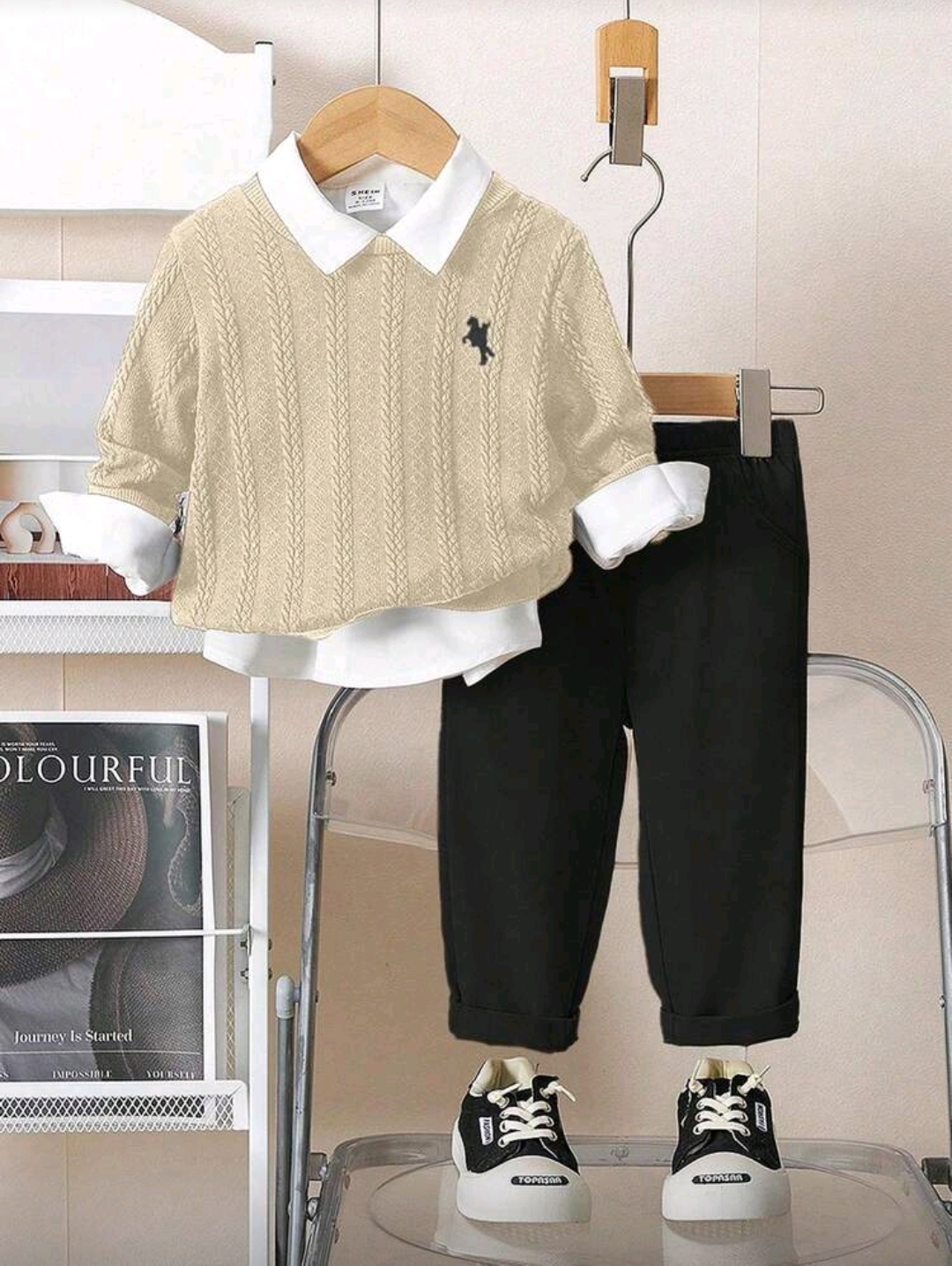 بدلة بيج قطعتين (من9-12شهر الى 2-3سنوات)