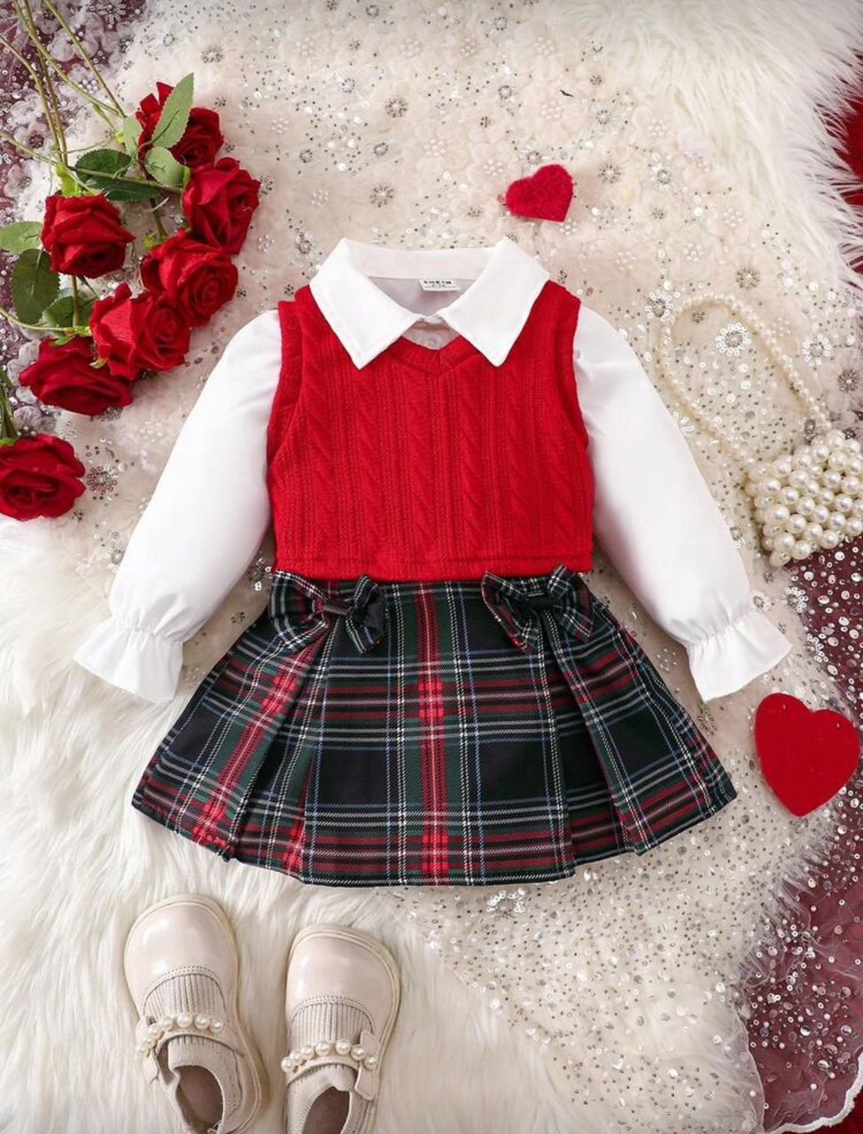 بدلة ثلاث قطع غولف حمراء (من 9-12اشهر الى 2-3سنوات)