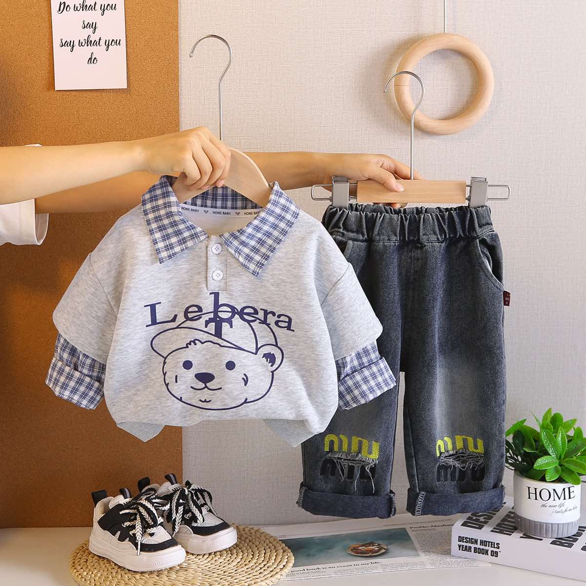 بدلة قطعتين اولاد لون رصاصي من عمر 1سنة الي 4سنوات