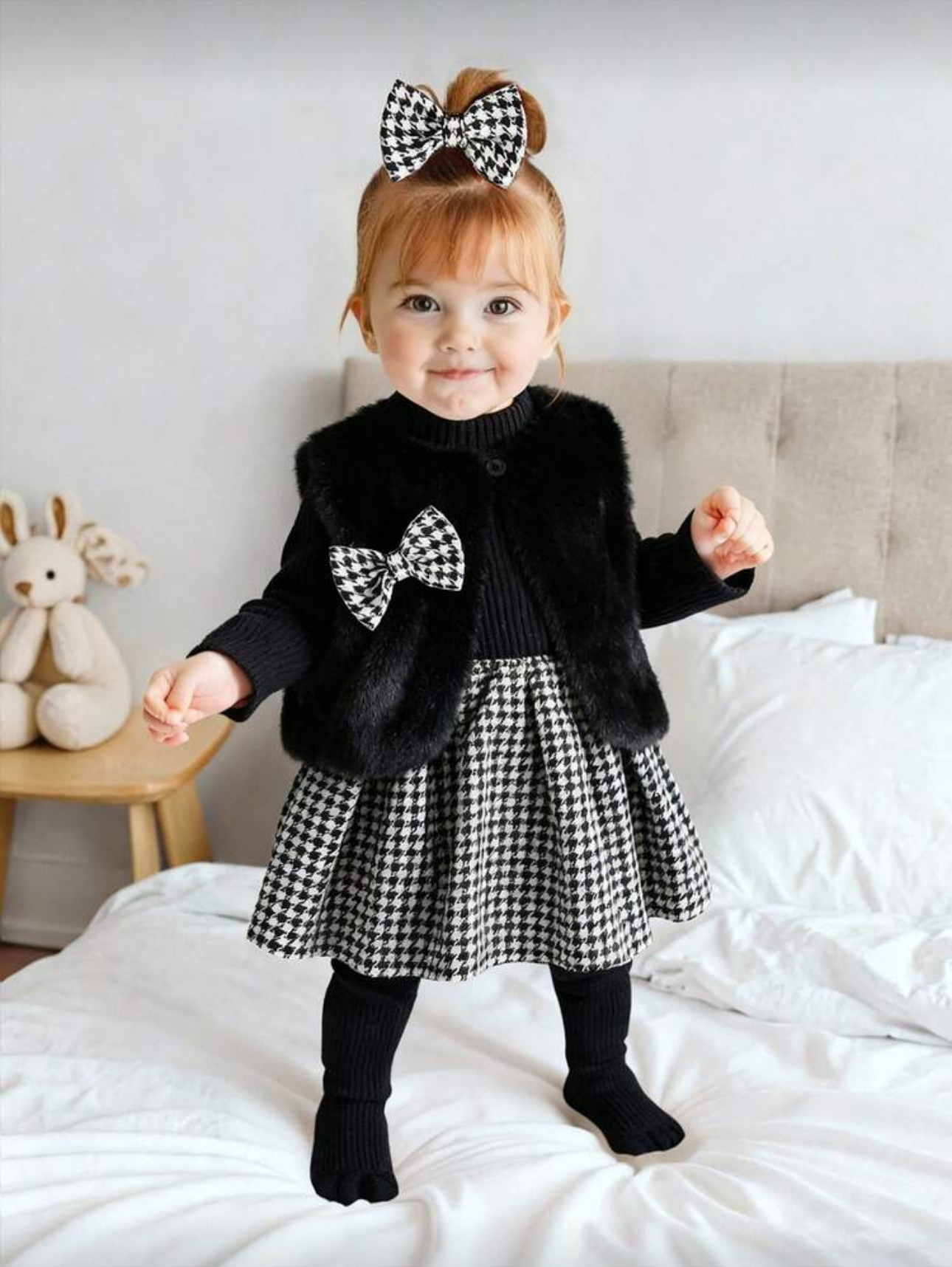 بدلة بنات تلات قطع جلد (اسود)من 2سنة الي 7سنوات
