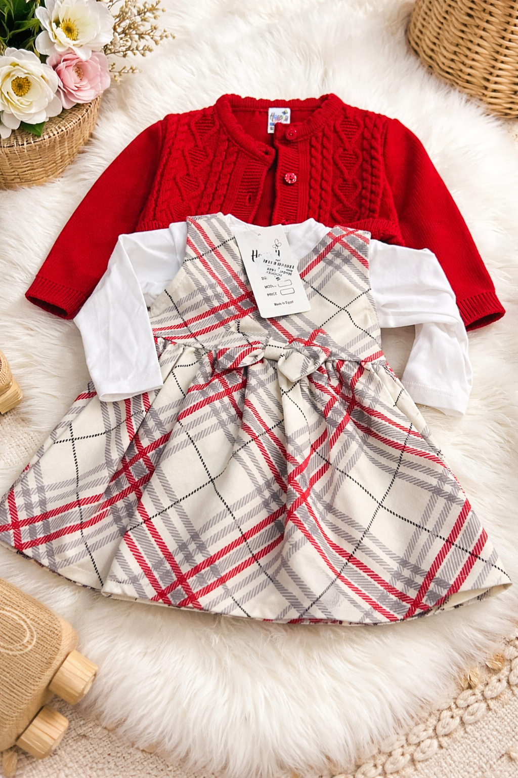 فستان احمر تلات قطع (9 شهور الي 2سنتين)