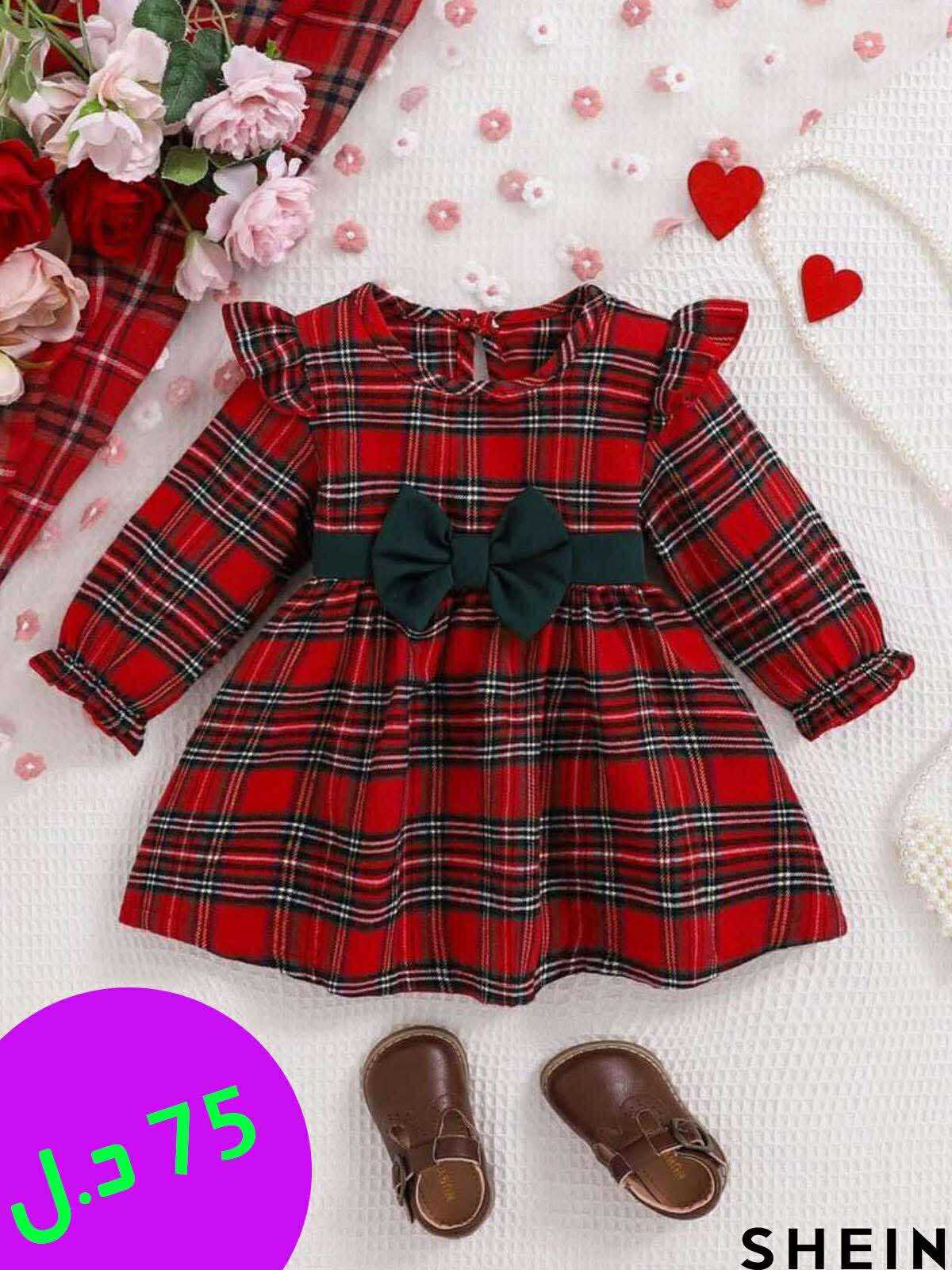 فستان احمر اخضر من(Shein )6 شهور الى 3 سنوات