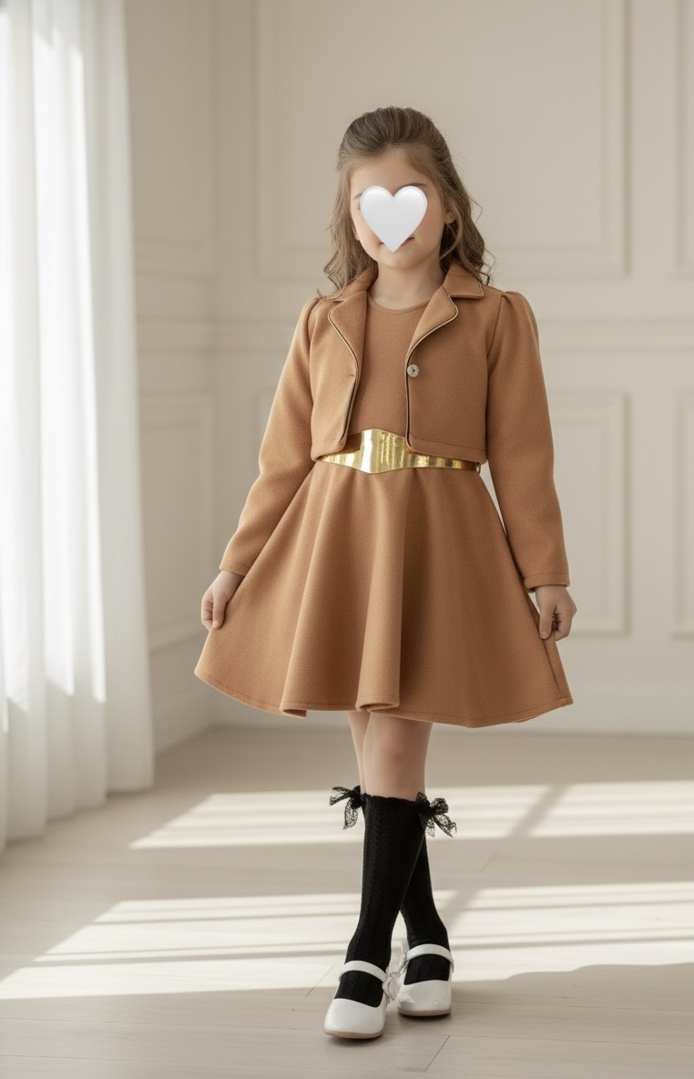 فستان جلد (بني غامق)من سنة الى4 سنوات