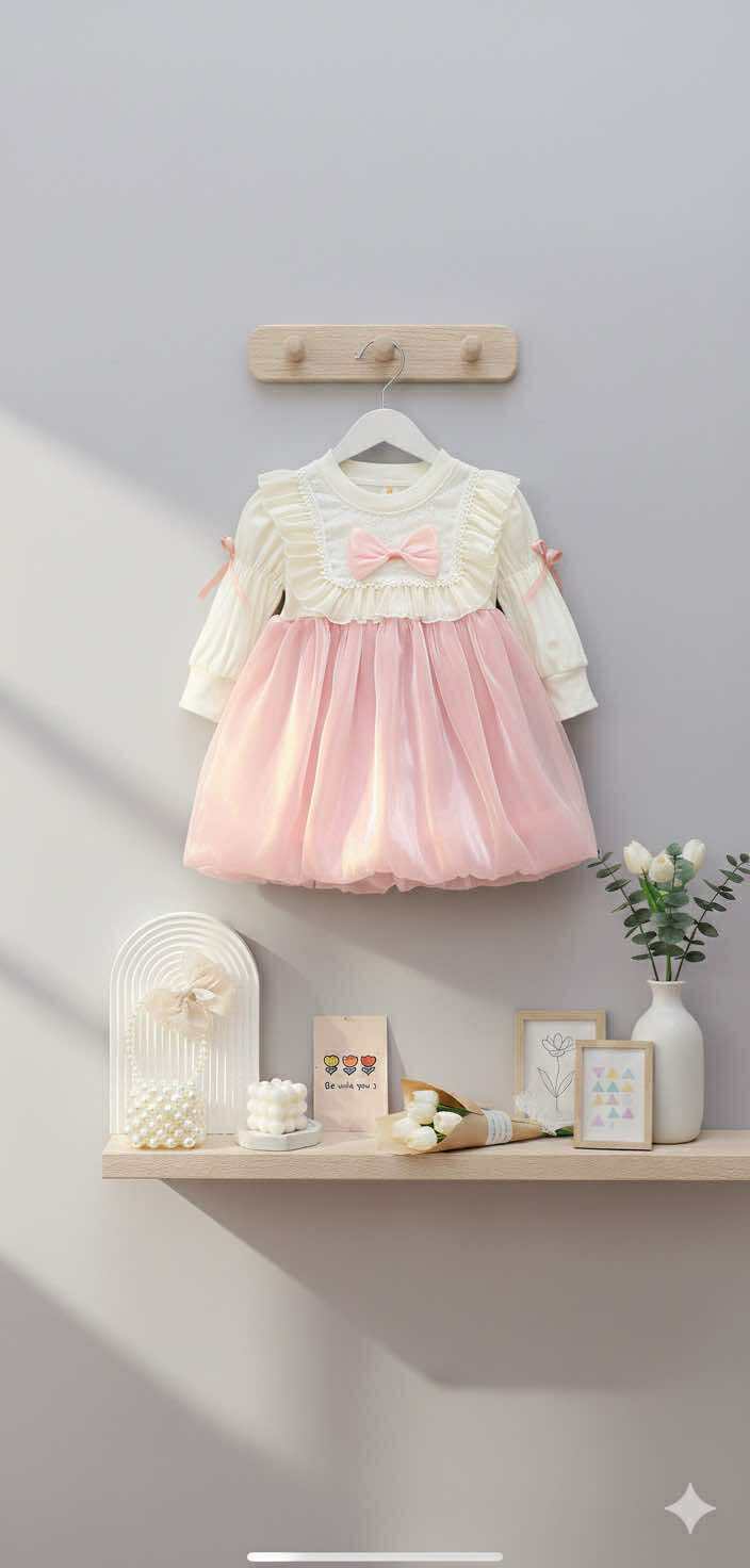 فستان كم (وردي)من سنة ونصف الى4 سنوات